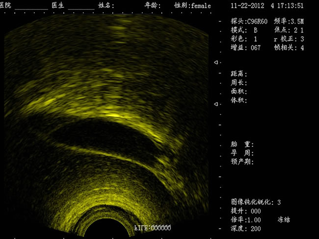 • 功能特點: 掃描角度: a) 6.5MHz腔內探頭:152可視可調; b) 3.5MHz凸陣探頭:60可視可調; TGC 調節:總增益、8 段TGC 調節器。 圖像放大:實時放大(16 級可調),局部放大(2 倍)。 圖像調節:黑白、左右、上下、亮度、對比度、焦點數、焦點間距、焦點位置、動態范圍、掃描角度、掃描線密度、聲功率、幀相關、M 速度。 圖像處理:圖像平滑/銳化、組織諧波、伽瑪校正、直方圖。 注釋功能:日期,時鐘,姓名,病歷號,性別,年齡,醫生、醫院、全屏幕字符編輯。 體位標記:30 種。